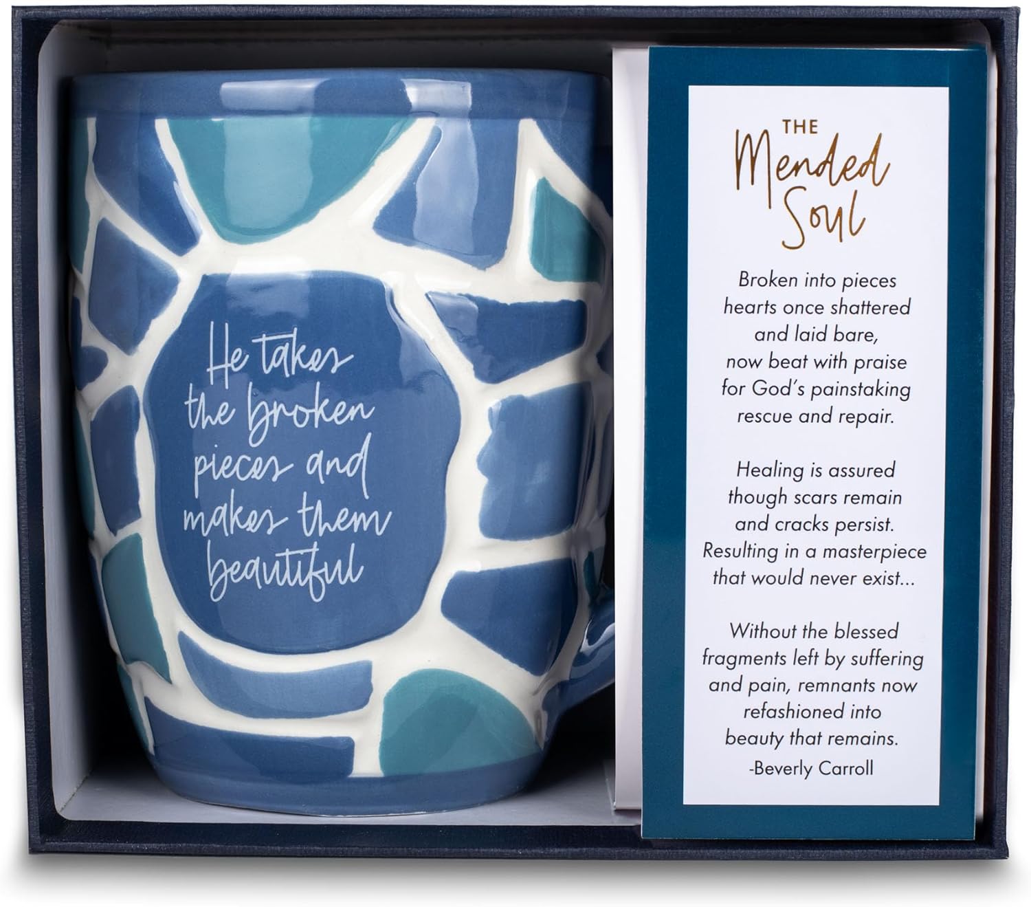 The Mended Mug artistically symbolizes life's healing journey, reflecting how broken pieces can be beautifully restored. Crafted from durable ceramic, this 16oz mug combines meaningful design with everyday practicality—microwave and dishwasher safe for convenience. Thoughtfully packaged with the Mended Soul Poem, it makes a refined and heartfelt gift that celebrates resilience and love.