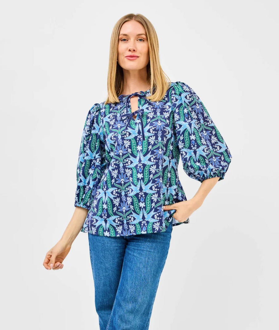 The Ren Top redefines feminine elegance with a contemporary edge. Its short puff sleeves with elastic cuffs and refined velvet tie accents enhance the flattering straight fit, creating a look that is both polished and versatile. Perfectly suited to elevate any ensemble, this top pairs seamlessly with jeans or skirts for effortless style.